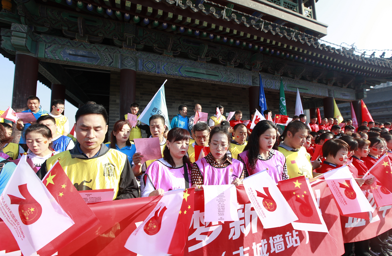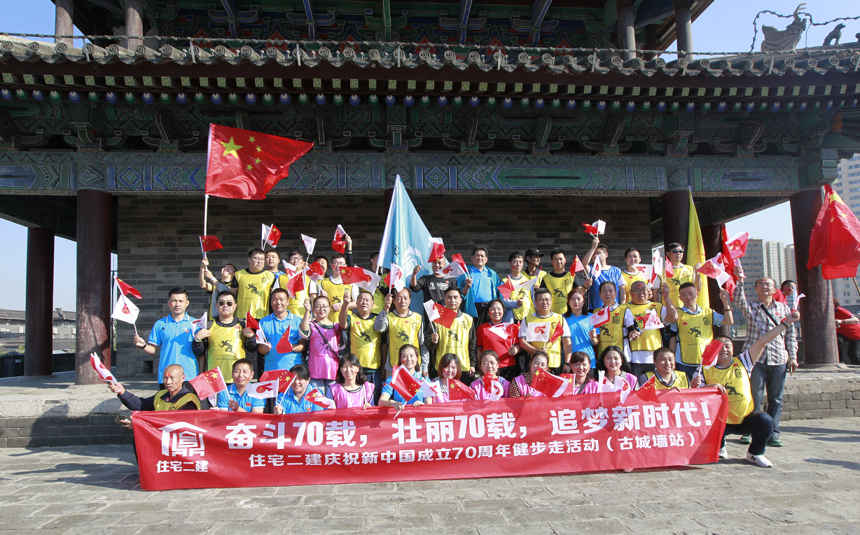為慶祝中華人民共和國成立70周年,9月25日早上9:00住宅二攜手下屬基層單位陜西中盛建設(shè)科技服務(wù)有限公司共計130余人在西安古城墻上開展了系列慶祝活動,長樂坊所轄的八仙庵社區(qū)也參加了本次活動。