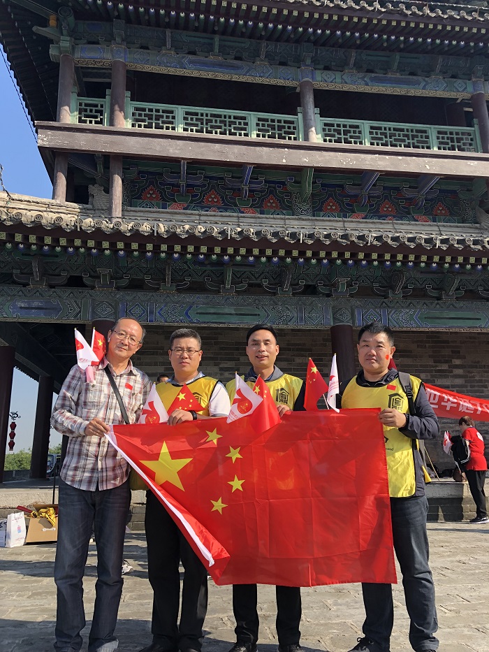 健步走活動是本次最后一項活動,線路是從長樂門出發(fā)至永寧門,再返回至長樂門。大家邁著堅定自信的步伐,走在古城墻上,欣賞著護城河、箭樓、女兒墻垛等一系列防御設(shè)施,前望不到頭,后望不到頭,看著下面如螞蟻般蠕動的人們,不禁感慨西安變化之大?;顒油局写蠹胰宄扇?,邊走邊拍照,引得其他游客也激動的加入此次活動。還有許多同事通過我們的采訪鏡頭表達了他們對中華人民共和國成立70周年的美好祝福。