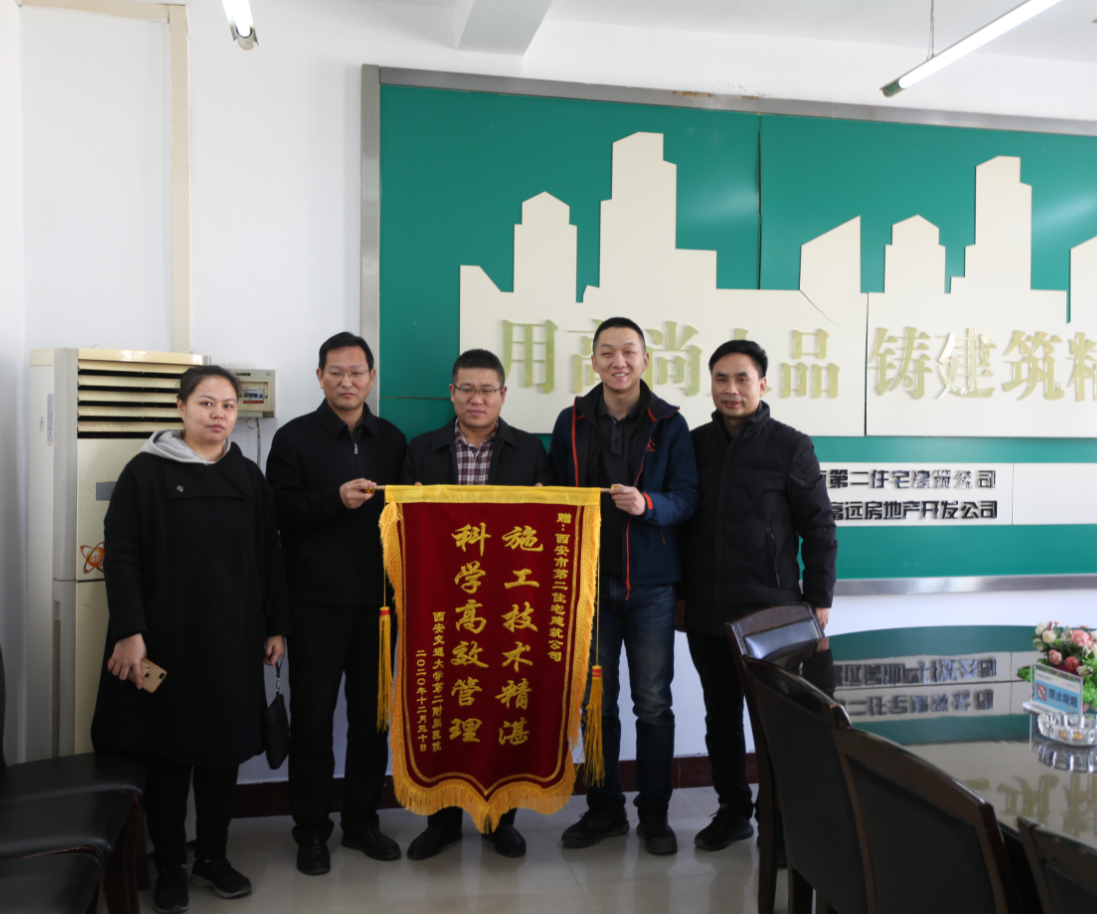 2月2日上午,西安交通大學(xué)第二附屬醫(yī)院后勤保障部負(fù)責(zé)人代表院方將一面“施工技術(shù)精湛,科學(xué)高效管理”的錦旗送到我公司,以感謝我公司提前保質(zhì)保量完成交大二附院西一樓裝修改造項(xiàng)目。