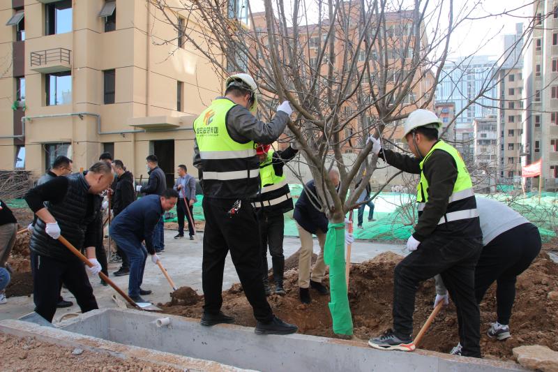 3月9日上午10點(diǎn),在我公司黃金嘉境項(xiàng)目部現(xiàn)場(chǎng)開展本次植樹活動(dòng),西安大興新區(qū)開發(fā)建設(shè)管委會(huì)、西安聞達(dá)置業(yè)有限公司(建設(shè)單位)、西安市住總建設(shè)集團(tuán)有限公司(總包單位)、陜西科興源工程管理有限公司(監(jiān)理單位)領(lǐng)導(dǎo)帶隊(duì),共同開展“植綠護(hù)綠·和諧共生”為主題的志愿植樹活動(dòng),參與植樹活動(dòng)的志愿者共五十余人,總計(jì)植樹近30棵。