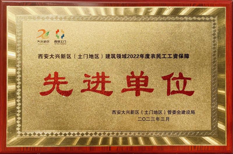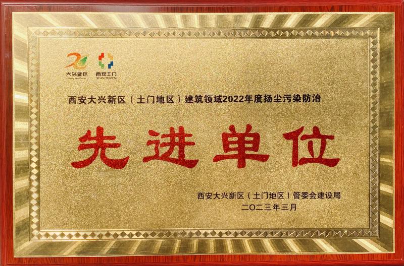 西安市住總建設(shè)集團(tuán)有限公司黃金嘉境項(xiàng)目部被評(píng)為“大興新區(qū)(土門(mén)地區(qū))建筑領(lǐng)域2022年度揚(yáng)塵污染防治先進(jìn)單位” “大興新區(qū)(土門(mén)地區(qū))建筑領(lǐng)域2022年度農(nóng)民工工資保障先進(jìn)單位”