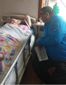 還有86歲的樊長奎老人,他不像王文謨老人精神狀態(tài)那般好,三年前因患腦梗一直癱瘓?jiān)诖?,生活不能自理,在樊長奎老人家中,柴紅軍坐在床邊握著老人的手噓寒問暖,詳細(xì)詢問、了解老人在醫(yī)療、生活等方面的情況,希望老人家身體健康,并向他送上了節(jié)日祝福和慰問。