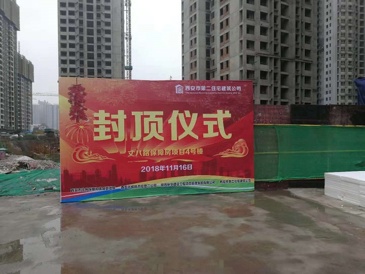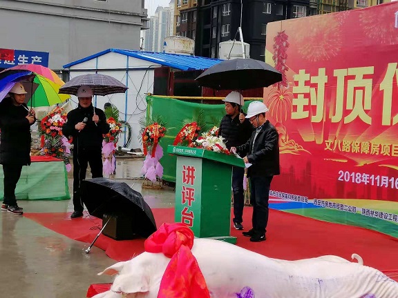 11月16日星期五丈八路保障房項目的施工現(xiàn)場,禮炮在片片雨云中炸響,鞭炮粘著雨花淅淅的散落著,雖然下著小雨,但是現(xiàn)場依舊人山人海,熱鬧非凡;10點50分隨著項目指揮長邢京平同志的聲音響起,丈八路項目封頂儀式正式開始。丈八路保障房項目4號樓主體順利封頂,標志著丈八路項目再一次完成了重要節(jié)點性的施工任務,這是所有現(xiàn)場施工人員堅持不懈的努力下共同完成的勞動成果;開發(fā)單位西安市經(jīng)營二公司書記王備戰(zhàn)同志在講話中對現(xiàn)場施工人員的工作予以高度肯定,并再三叮囑大家要再接再厲完成好后續(xù)工作,參加本次活動的還有建設單位各級領導,監(jiān)理單位總監(jiān)及各專業(yè)工程師,施工單位西安市第二住宅建筑公司副經(jīng)理杜軍、技術總工劉琪、指揮長邢京平、現(xiàn)場負責人陳衛(wèi)民及各級現(xiàn)場施工人員。